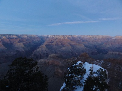 メキソコ料理を堪能したあと、雪が凍結している道を、注意しながら歩き宿に戻る。今日は本当に寒い。しかし、念願のグランドキャニオンを見ることができ、寒さなんて吹っ飛んだ。宿に戻り、パソコンをネットにつないでみる。無線ランが来ていて設定したらつながった。明日のことを調べて、今日のことを少し書いて、アップして寝る。