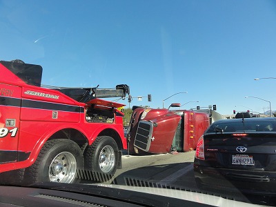 <トラックが横転>