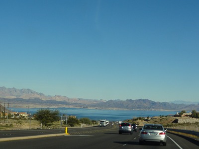 給油後、簡単な朝食を買い、ナビに沿ってラスベガスを抜け山道をヘンダーソンに向けて進む。やがてミード湖が現れる。ここはあの有名なルーズベルト大統領のニューディール政策の一環として建設されたフーバーダムによってできた湖。