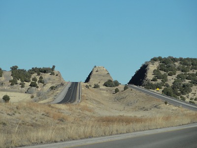 ウイリアムスで高速を降り、左に曲がるとグランドキャニオンへの道になる。ここらあたりから道の両側に雪が現れ始める。心配していたのだが、幸い道路上にはなく、支障はない。
