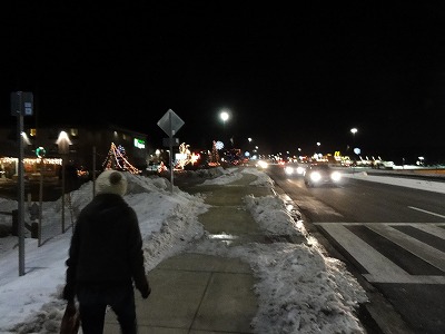 夕食はホテルの中でなく、町に出ることにする。雪の中を、少し歩いた所にあるメキシコ料理店に入る。私は一応ビーフステーキ、、娘はビーフとチキンとエビと3種の盛り合わせ。しかし豆などのどろどろしたものに包まれて、今ひとつ味が分からない。