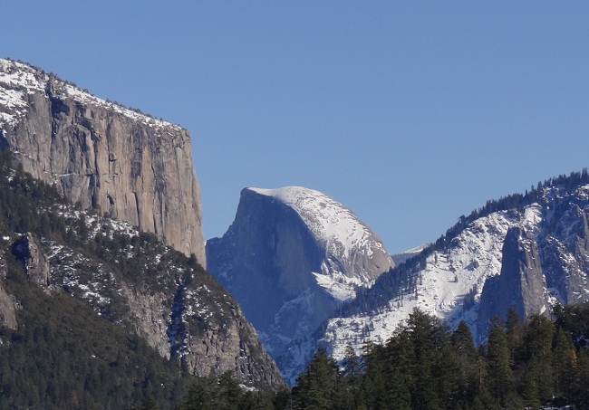 凍った坂を注意しながらゆっくり上がるとやがてトンネルに着く。凍りついたツララが垂れ下がっているトンネルの手前に駐車場がありここが有名なトンネルビュー。ここからヨセミテ谷を一望する素晴らしい眺めが広がるのだ。