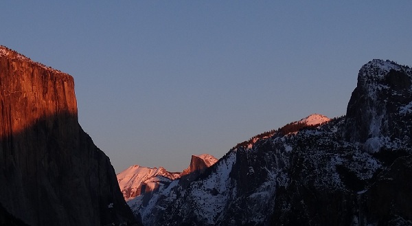 しかも夕暮れの光がエル・キャピタンの上方だけに反射して赤くなる。