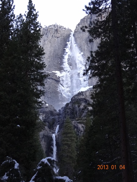 あくる朝、日の出前の7時に起きて散歩。ホテルのそばのヨセミテ滝を見に行く。今日は谷のあちこちでトレッキングを試みるつもり。雪があっても歩けそうな所を昨夜ネットで調べておいた。