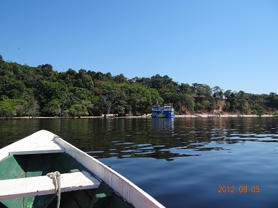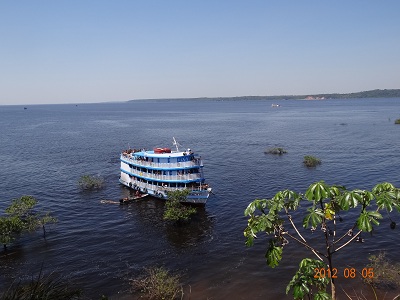 ここは高台、下のアマゾン川を見る。大きな観光船が泊まっている。岸辺には接岸できないから小舟でやってくる。こうやって次々くる観光客を目当てに、何回も踊るのだろう。ウーン、昔には無かったであろうことで、どこまでが観光でどこからが真の生活か分からないが、われわれが、こうして気軽に楽しめることには感謝。