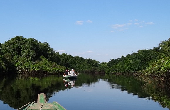 船で、来た水路を戻る。途中また、水上売店によりビールを買い、一本飲む。どこからか電気も引いていて、冷蔵庫もあり、ギンギンに冷やしてある。こうしてのんびりと、たまに来る客で商売がなりたっているようで、こういう生活もしてみたいと思った。ただし3日くらいかな?