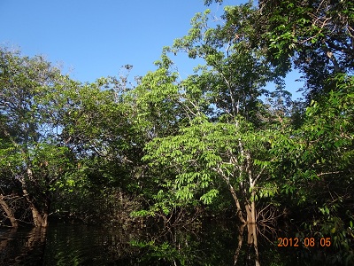 約3時間、あちこちとカヌーで探し回る。ほんとにこの若いガイドは律儀というか、一生懸命動物を探してくれる。動物はサルが時々樹上に現れる他は、鳥がバタバタと飛び立つ程度。なにせ、圧倒的な樹林が動物の絶好の隠れ家になっていて、なかなか他の動物は姿を現さないのだ。