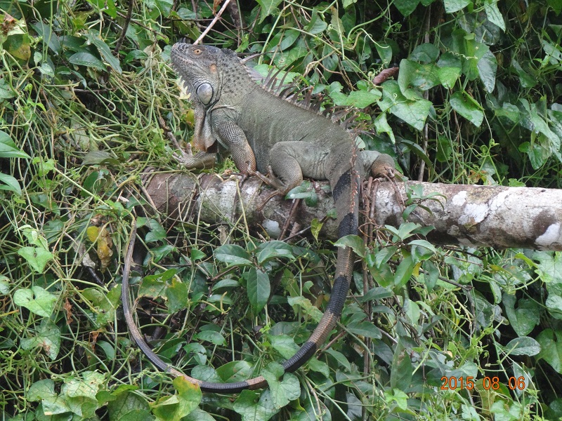 木陰の中によくいるのはカメレオンではなくグリーンイグアナ。イグアナはメキシコの遺跡の中にいたのをたくさん見ているので驚かなかったが、木に登っており葉の色と見分けがつかないように暮らしている。