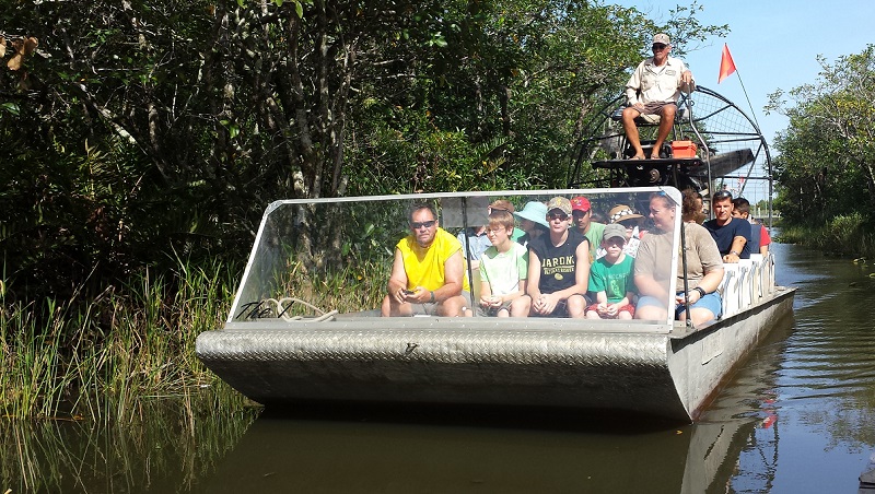 やがてマイアミからの広い道に合流して、しばらくいくとエアーボートの看板が目に付くようになる。ここらあたりは国立公園の手前であるがもう湿地帯でいくつかの店がエアーボート観光をやっているのだ。当然国立公園の中ではこんなことはできない。適当な店をみつけ入ってみる。