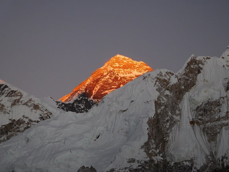<夕日に染まるエベレスト(8848m)>