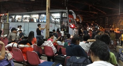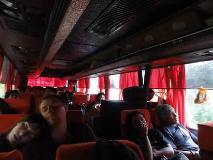 汗だくになっているので着替えをして、ビールを飲みながらバスを待つ。今晩は夜行バスでバナウエイまで移動。夜行バスは体力的にはしんどいが、これで日程が楽になり、宿泊費も浮きよく使う。一日中歩き回ってしんどいが、よく寝られるだろう。