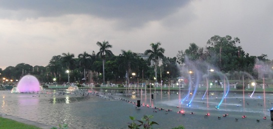 その後、公園に出る。日本庭園があったので入り休憩。ベンチで少し横になる。あたりにはカップルが数組。夕方になりしだいに暗くなってきたのでじゃまにならないように退散。最後に大きなリサール公園に出たが、ここで照明と噴水のコラボに遭遇。音楽に合わせ、噴水が吹き出て照明も変わる。最後には炎まで出た。フィリピンでもこういうことができるんだと感心。