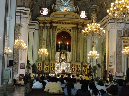 そのまま南に歩きパッシグ川を渡り、郵便局あたりに出ると、そこはイントラムロスと呼ばれる城塞都市に入る。この中にたくさんの名所、旧跡があるのだ。最初はマニラ大聖堂。中にも入ることができ荘厳な礼拝堂で一休み。