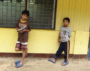 もと来た道を引き返し、売店で荷物を受け取り、ライステラスを横断してもと来た道を戻る。また雨が降ってきて、民家の軒先で雨宿りする。最後に小学校があったので寄ってみる。子どもたちも遊んでいる。
