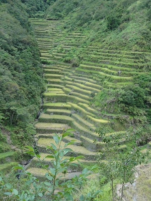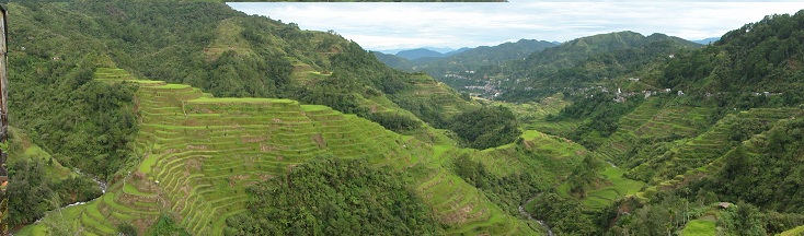 約1時間で、バダッド村に到着。ここから見たライステラスは圧巻。見とれていると、どこからともなく、おじさんが現れ、滝に行くなら案内するよ。という。ここから滝への道が地図も無く不安だったので入り口まででいいと言って100ペソ(200円)で契約。